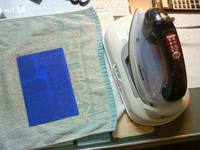 アイロンの熱で生基盤にパターンを移す作業に入ります。
