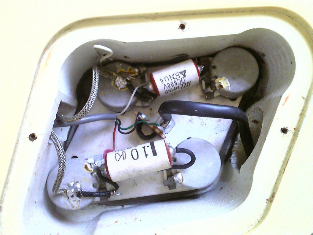 あと、この時代のお決まりのベースプレート仕様。作業簡素化ですね。ノイズ対策にもなっているとは思いますが時にはサウンド的に邪魔な場合も…。
