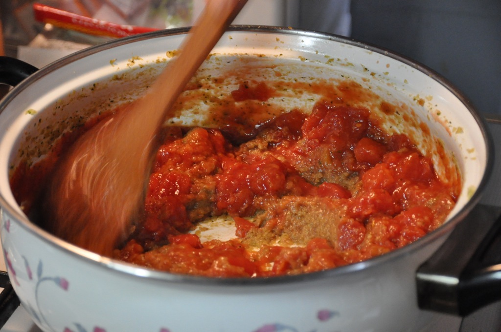 後は水を入れ、ローレルの葉やコンソメを入れ弱火でしつこく1時間ほど煮込みます。